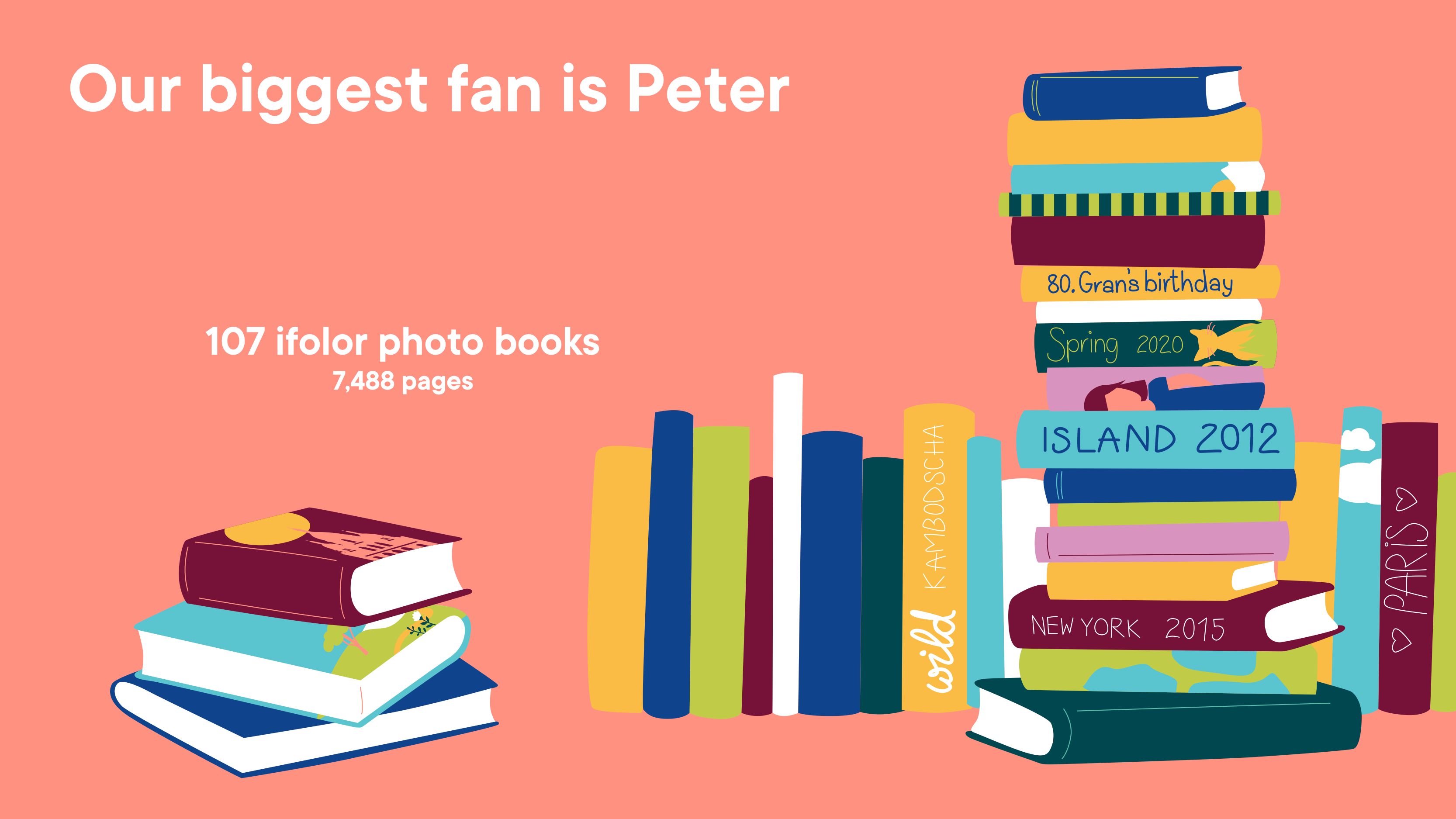 But what makes our customers tick? What are the most popular subjects, and what are they photographed with? And can you guess how many photo books our loyal customer Peter already has in his bookcase at home?